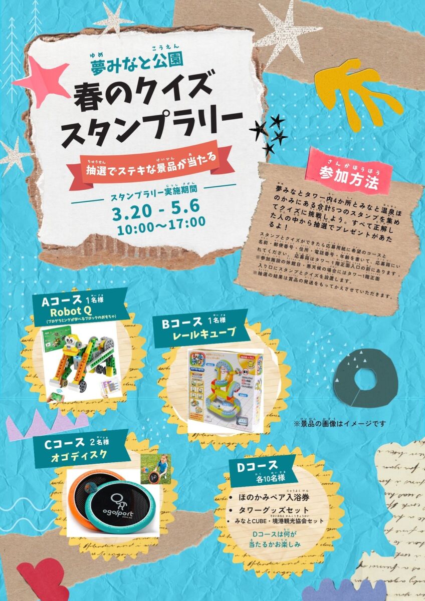 タワー、みなと温泉ほのかみにある5か所のクイズ&スタンプラリーに挑戦しよう!